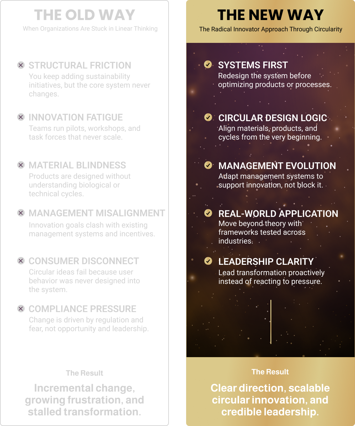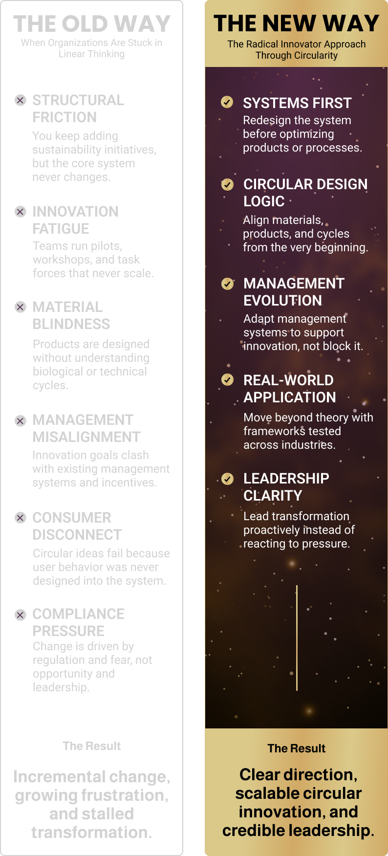 The Radical Innovator approach is a proven way of leading transformation through circularity without relying on slogans, greenwashing, or short-term fixes.